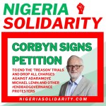 Francis Nwapa, National Secretary Youth Rights Campaign (Nigeria) We, of the Youth Rights Campaign (YRC), unequivocally condemn the conditions attached to the bail granted to Adaramoye Michael Lenin, Mosiu Sodiq and eight others, who have been incarcerated in connection with #EndBadGovernance protest for about six weeks now, by Justice Emeka Nwite of the Federal High … Continue reading “Onerous bail conditions prolong detention of Michael Lenin & other #EndBadGovernance protestors – YRC Statement” - Protest at Nigerian High Commission in London. Free #EndBadGovernance ProtestorsActivists from Nigeria Solidarity, quickly organised a protest at the Nigerian High Commission in London on Monday 9 September in response to the attacks on the workers’ and anti-austerity movements. The protest supported the #EndBadGovernance protesters and the Youth Rights Campaign (YRC) by submitting a petition demanding the release of Nigerian Labour Congress President Joe … Continue reading “Protest at Nigerian High Commission in London. Free #EndBadGovernance Protestors”